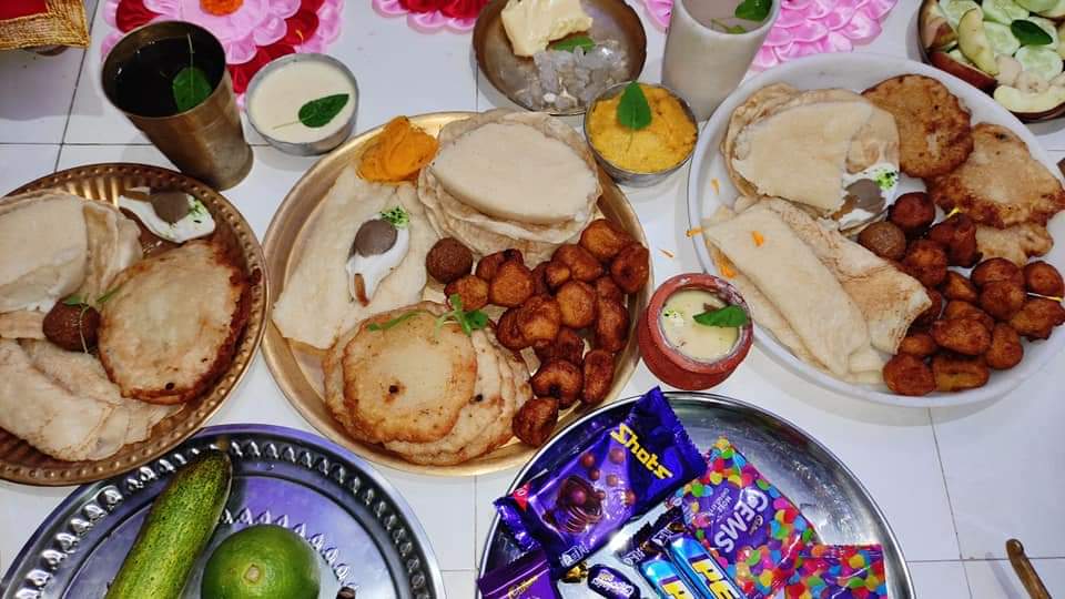 আমার মা আর কাকিমনিরা মিলেই এই ভোগের প্রসাদ তৈরি করে ।আর এই ভোগ দেওয়া হয় ঠাকুরকে বিকেল বেলায়। আর এই ভোগের প্রসাদ হিসাবে লুচি সুজি থেকে শুরু করে তালের বড়া, মালপোয়া ,তালের ক্ষীর, পিঠে, নাড়ু সবকিছুই তৈরি করে ঠাকুরকে নিবেদন করা হয়েছে।