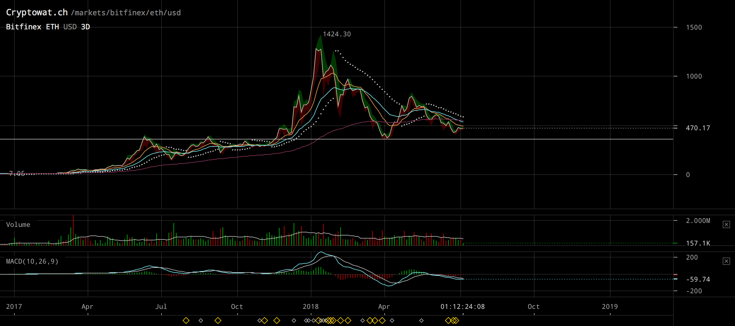 ETH/USD,BTC/JPYチャートから今後の相場を展望してみた。