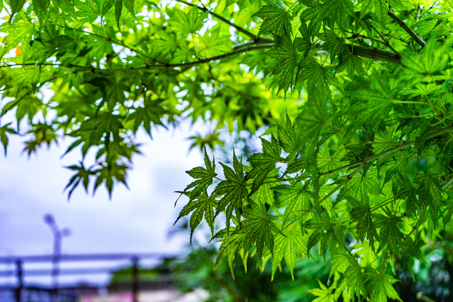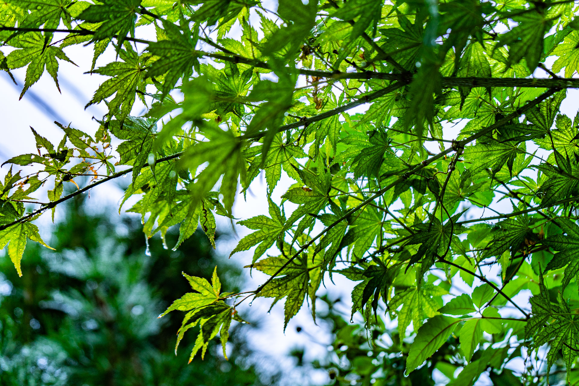 さまざまな風景の写真で、雨と青紅葉の組み合わせはとても日本的だと思います。