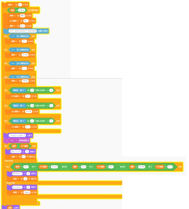 だいたいプログロムを組むときは脳内でみんなscratchみたいなことしてプログラミングしてます。