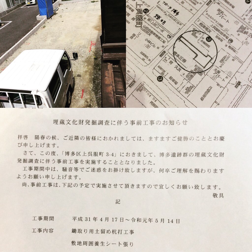 博多遺跡群の埋蔵文化財発掘調査の為に、明日17日から5月14日まで掘り起こしの為の工事があるそうです(@_@;)