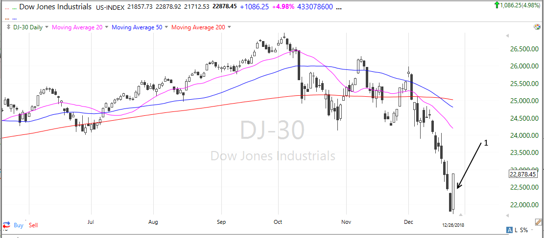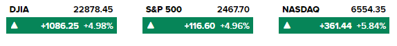 ダウ(DJIA)は1,086.25ポイントの上昇となり、ポイントで見た場合、これは史上最高の上げ幅です。冴えないマーケットが続いていただけに、「いくらなんでも売られ過ぎ、そろそろ一時的な反発ラリーが起きる」と多くの人たちが言っていましたが、まさかこんなに強烈なラリーがやって来ることを誰も想像できなかったことでしょう。