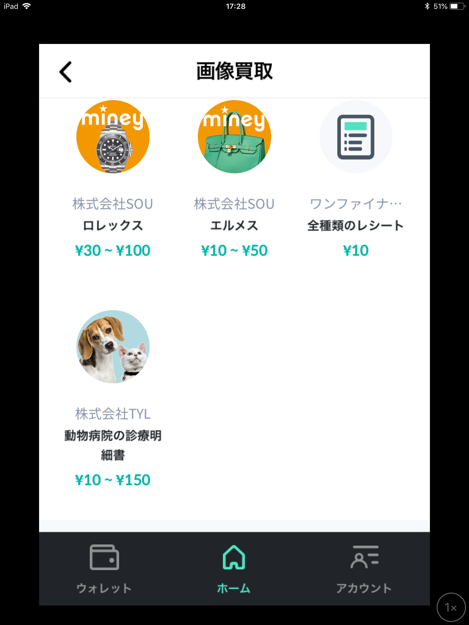 有名ブランドや動物病院のレシートまで、ラインナップがあります。