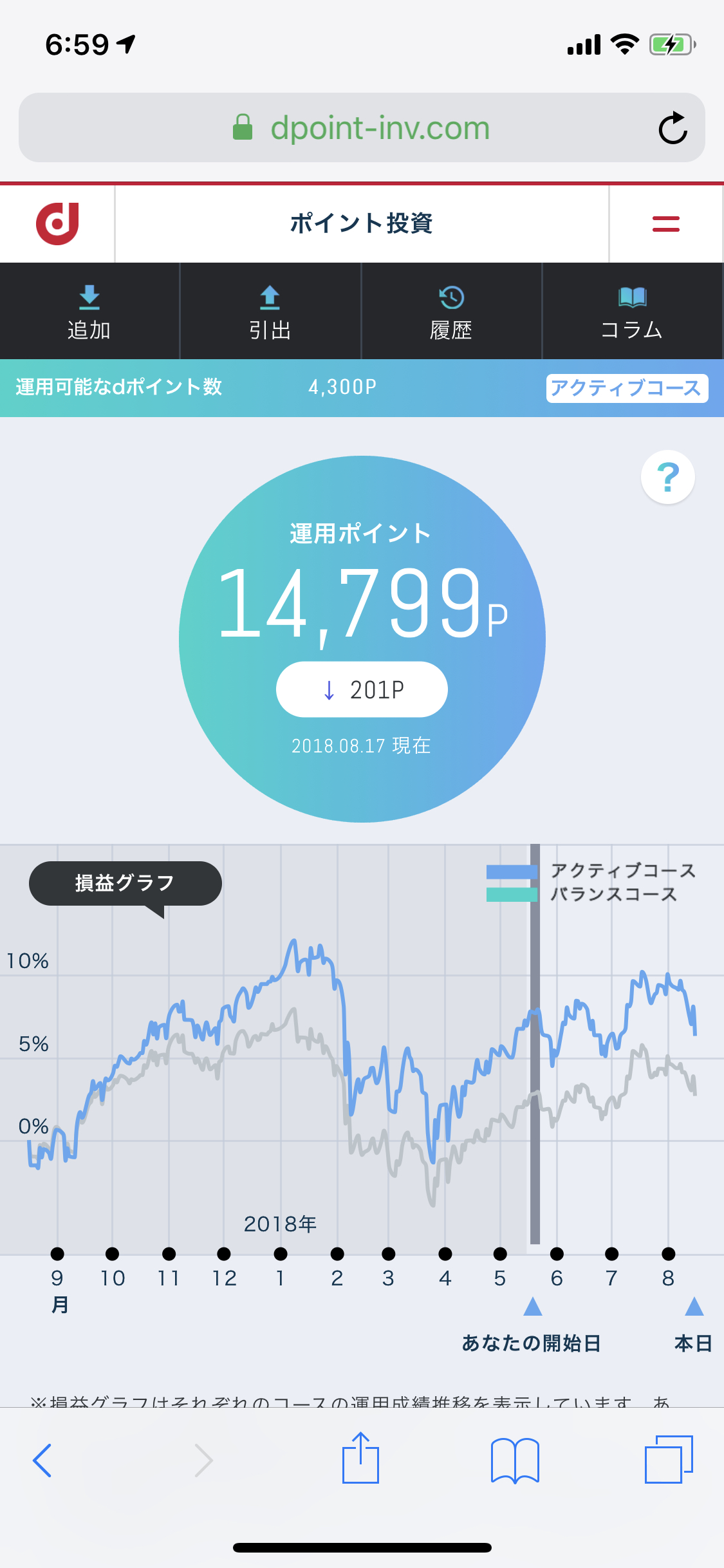途中、300ポイントを追加投資したので総ポイントが1万5000ポイントとなりますが、結果的に201Pマイナスですw(8月17日現在)