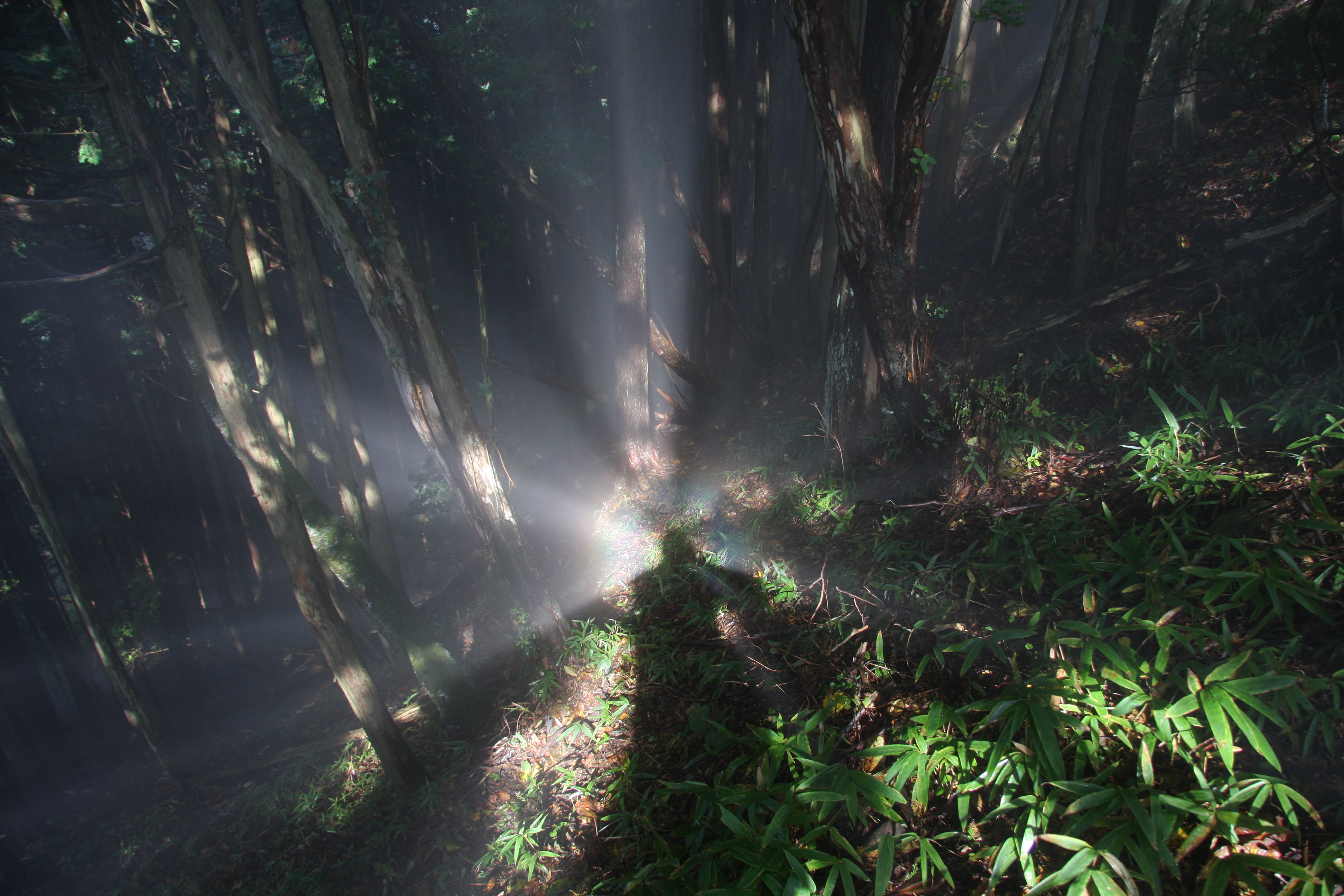高原なので朝になると霧が立ち込め、かなり幻影的ないい雰囲気になります。 そんな時に林の中に入ると、霧が木漏れ日を受けることで、ブロッケン現象と呼ばれる自分の影に後光のような虹がかかる現象がみられることもあります。