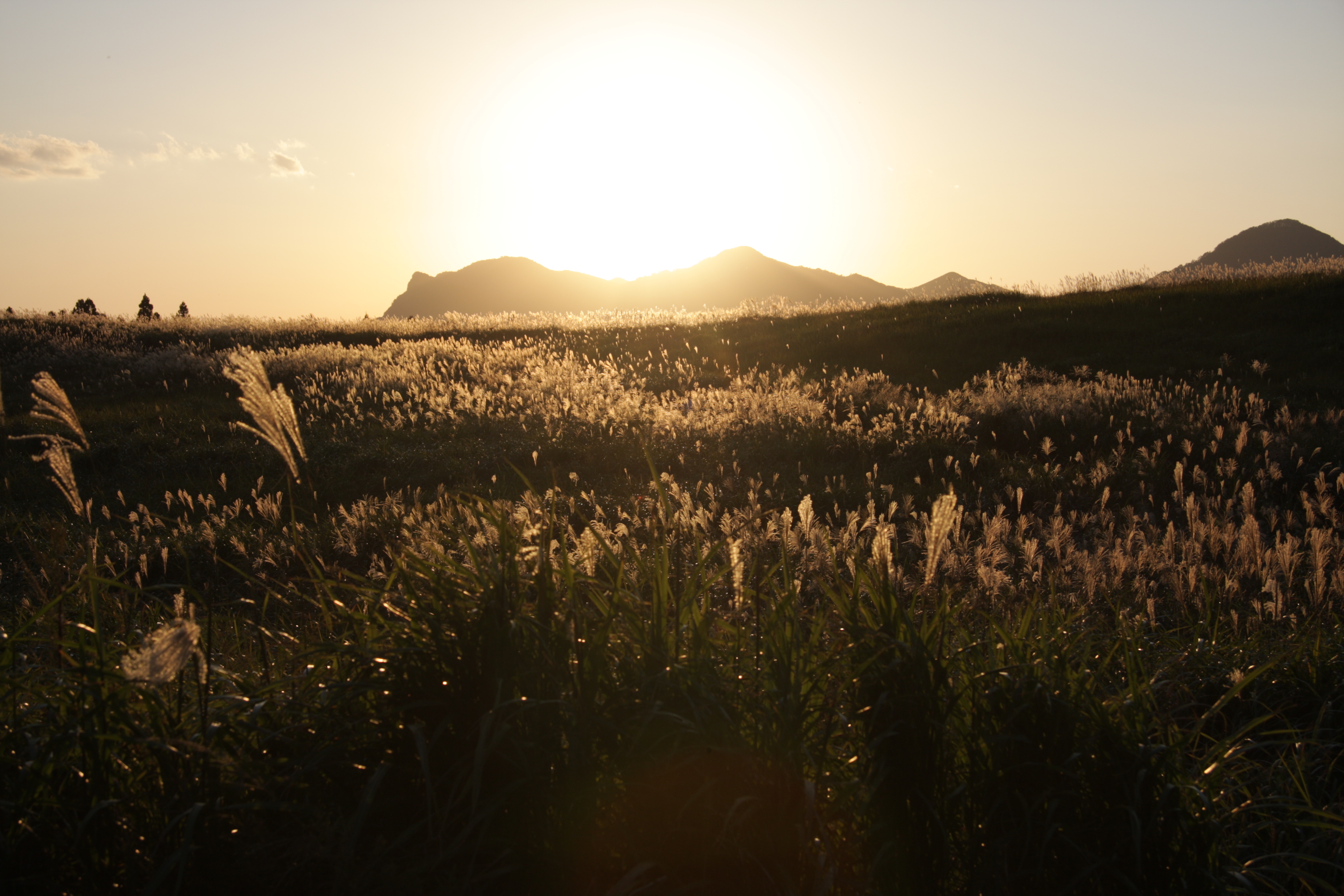 個人的には、昼のうちにここがいいだろうと言うスポットを見極めておき、日没の2時間ぐらい前からその場所で、ススキ原の色合いの移り変わりを楽しむのが好みです。