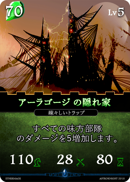 緑色のカードは、多くの「部隊の兵士」を持った「ストラクチャー」が中心となっているようだ。それだけでなく、敵を罠で捕えたり、味方の「部隊の兵士」を増やしたりすることで、鉄壁の守りを誇ってくれることは想像に難くない。