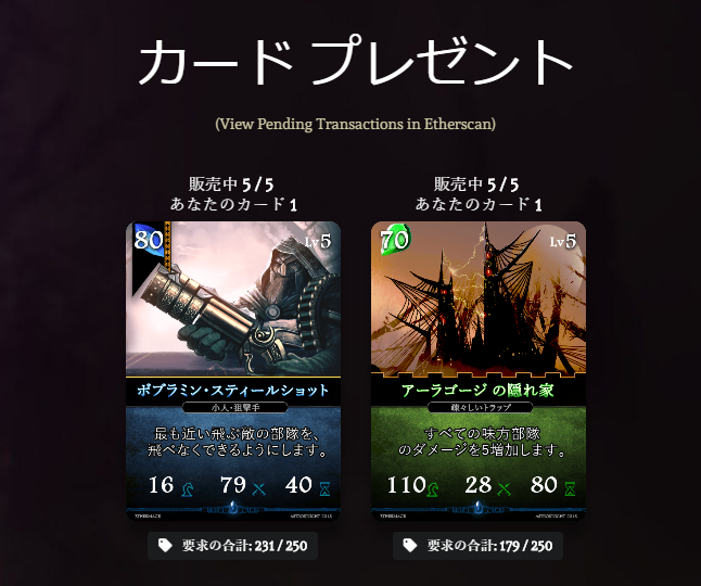 このカードも「ボブミラン・スティールショット」と同じく、配布枚が限定されている。現在、上限の250枚中179枚は他のプレイヤーが所有しているため、71枚残っているようだ。(2018年9月11日時点。)イーサリアムのガス費用のみで獲得できる唯一のチャンスであるため、今すぐに登録することを強くお勧めしたい。