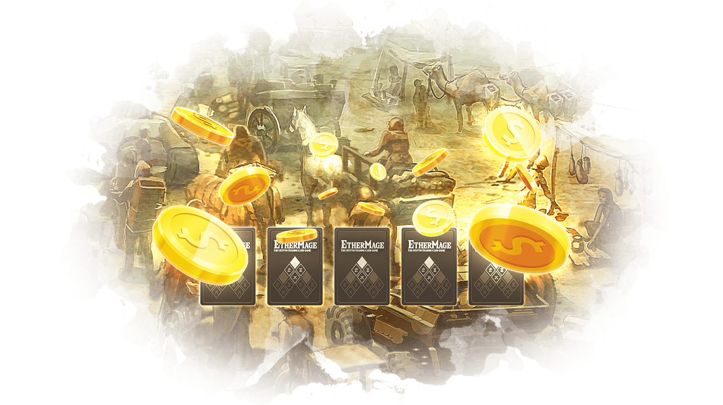 全てのプレイヤーは、「EtherMage」へアカウント登録するだけで、10枚のカードからなる無料のスターターデッキを獲得することができる。これをベースに、購入したパックに入っていたカードや他のプレイヤーから購入したカードを組み合わせて、複数のオリジナルデッキを構築することが可能だ。