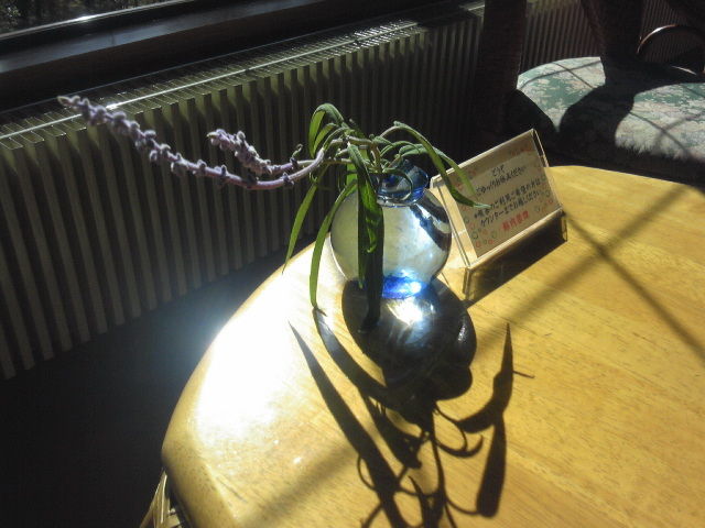 記念館のカフェスペースでコーヒー。テーブルに花が置かれていて、水の入った青いガラスの花瓶が光を曲げて、レンズのようでした。よく晴れた日。賢治の好きだったというベートーヴェンの田園交響曲が流れていました。