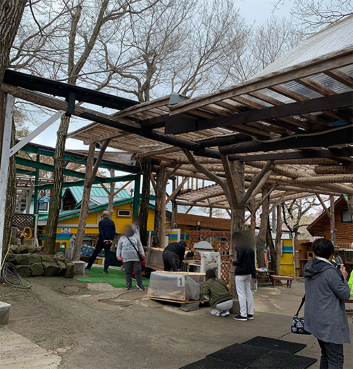 あと、こちらの餌やり体験できるエリアは休憩所にもなってるようで、中に人間用のベンチがあって座って休むことも出来ました。