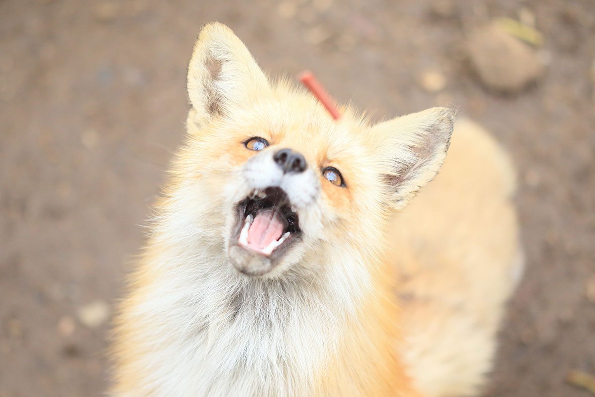餌を持ってると、キツネがじっとこちらを見つめてくるので(かわいい)