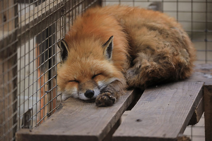 既に檻の中に色々な種類のキツネがいます。