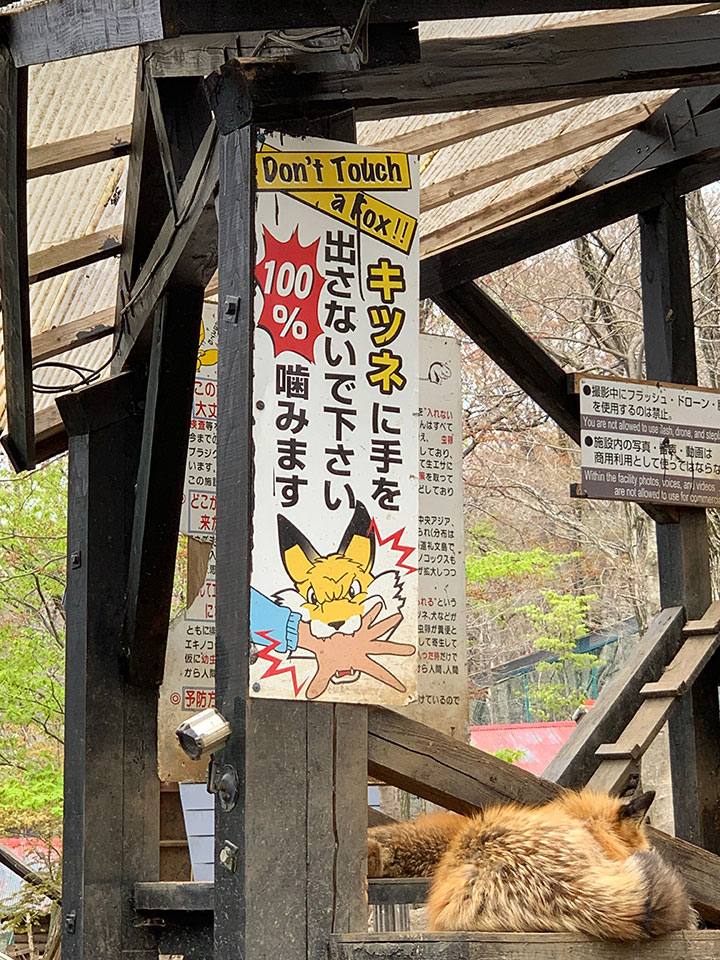 事故があっても我々にも施設にもキツネにも良いことはないので、こっちの掟もしっかり守りましょう。