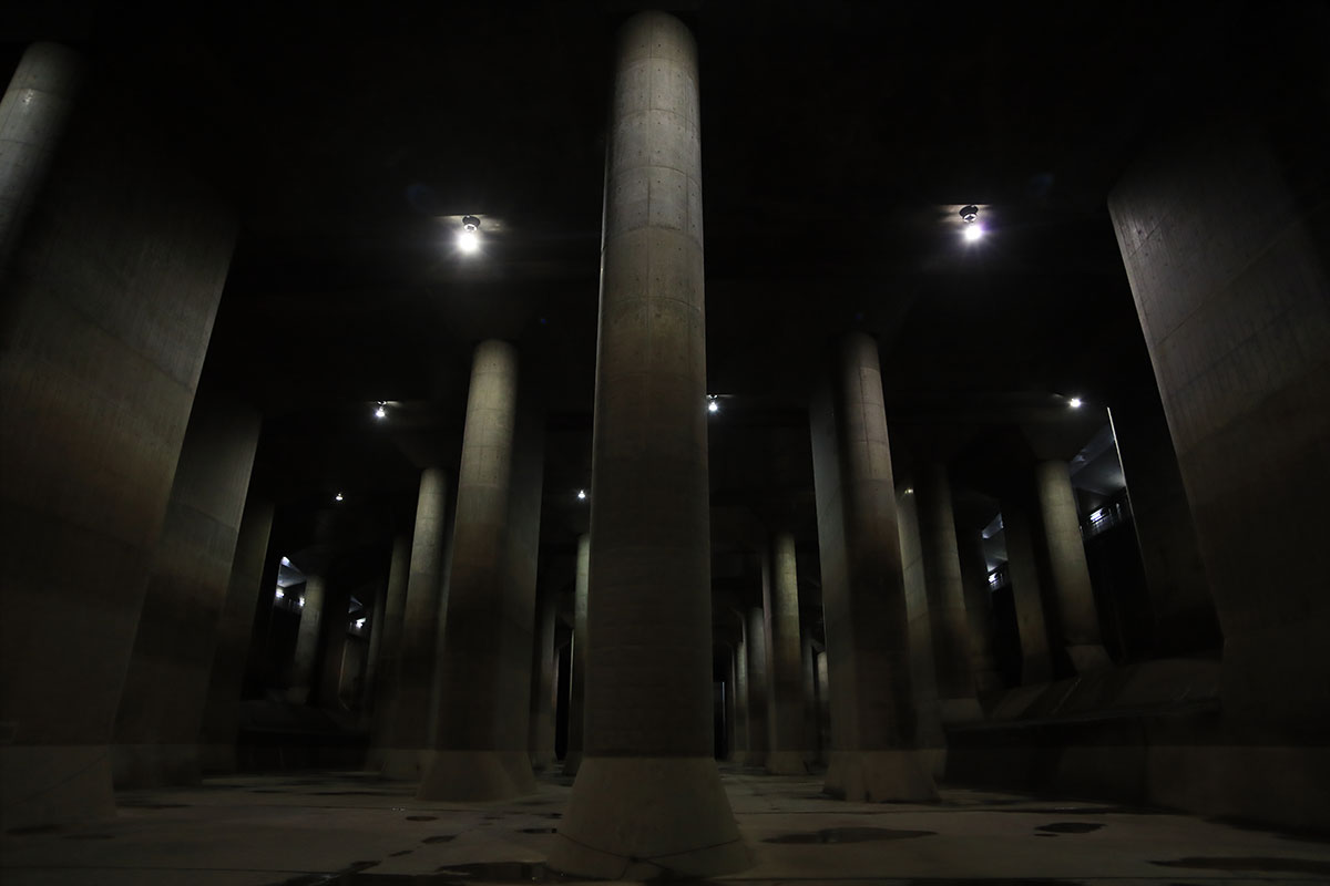 幾つかの河川の水が溢れそうになったら、立坑へ水を取り込みトンネルを通してこちらに集め、そして江戸川へ放水。といった手順みたいですね。