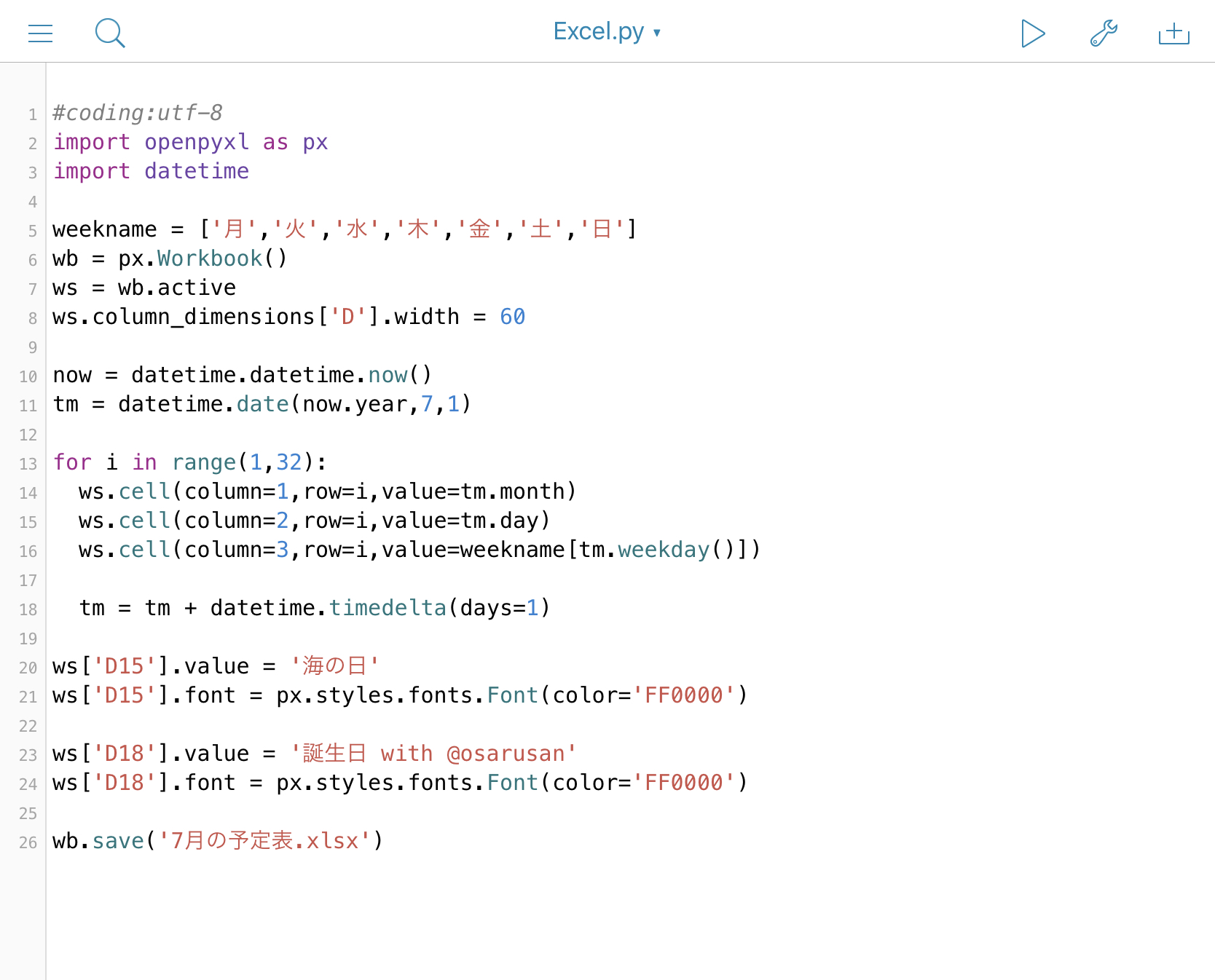 以上のシートをPythonista 3というアプリで作りました。PythonとExcelについてはこれから勉強していきます!