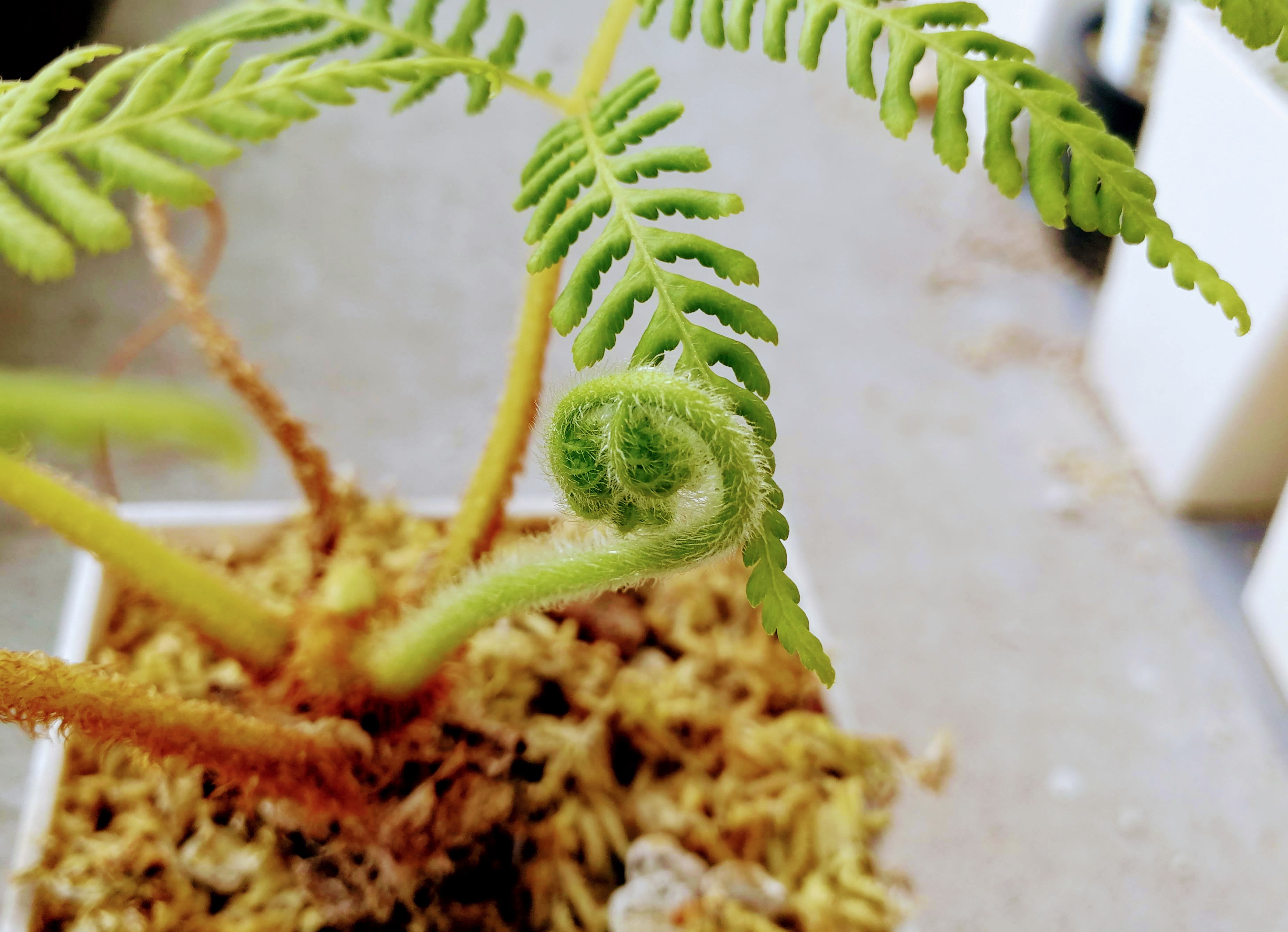 これからこのくるくるは大人になって大きく手を広げ、ヘゴ本体からは新たなる爬虫類的なくるくるが生えてきます。それを繰り返しながらリトルヘゴも背を伸ばしてビッグヘゴになっていきます。寒さには弱いようなので冬は室内で管理しようと思います。