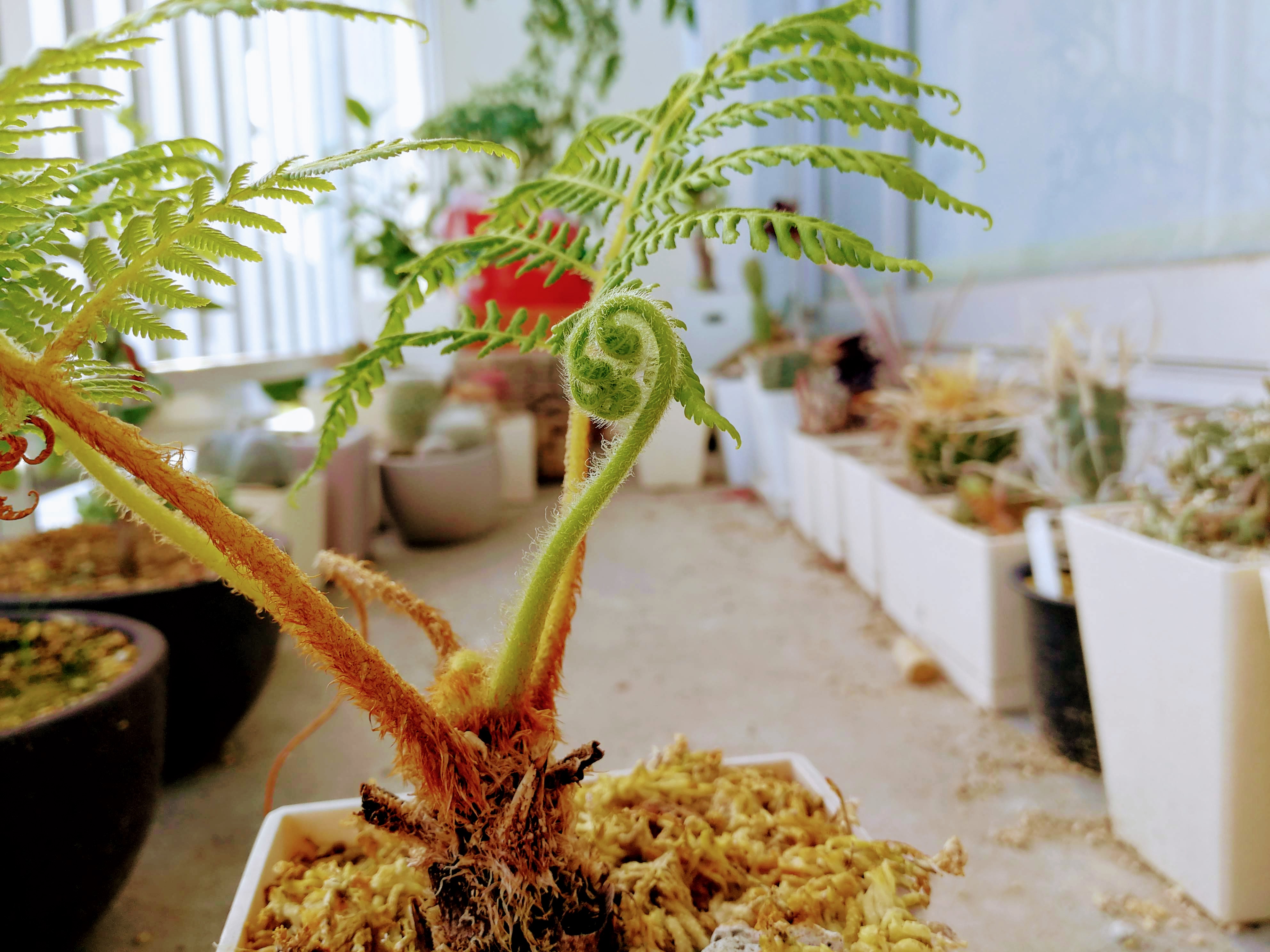 はじめまして。可愛らしい植物ですね。くるくると産毛、これが成長すれば葉っぱになるのでしょうか。。。