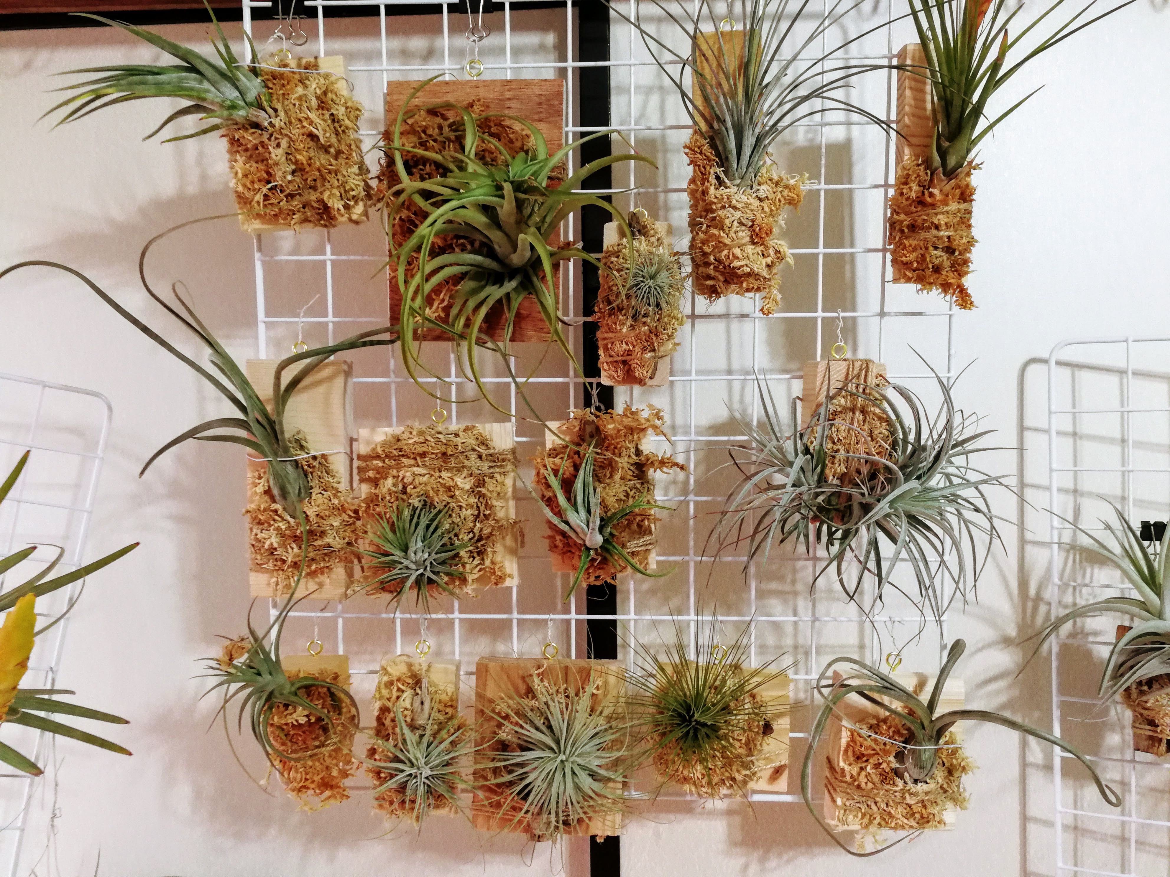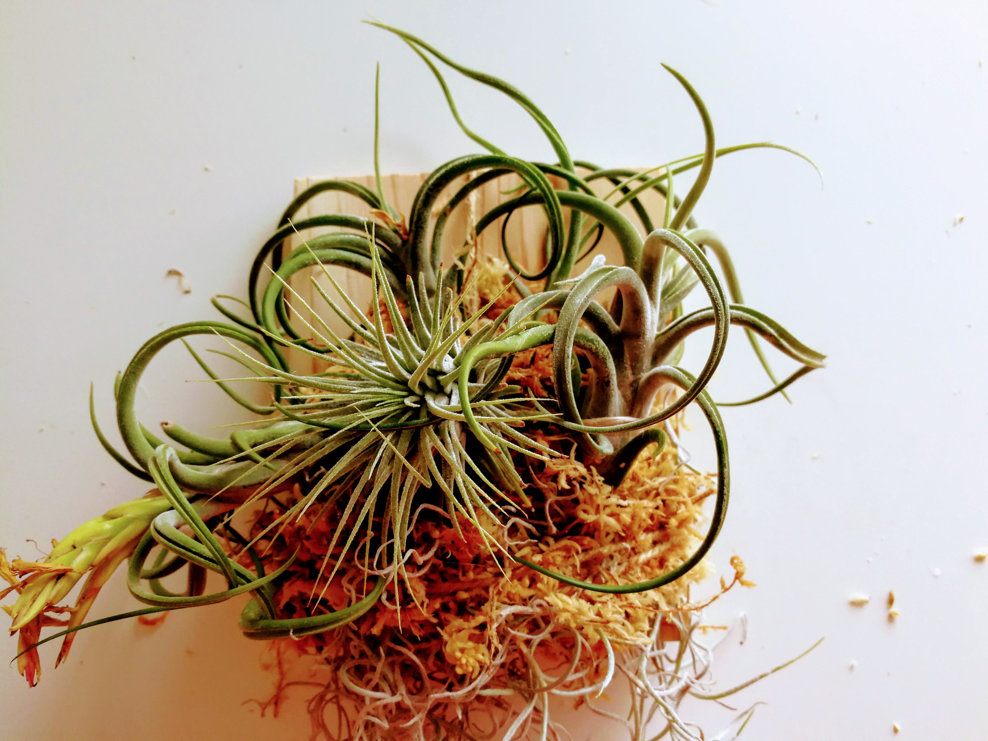 エアプランツを水苔とともに板に貼り付けたの巻