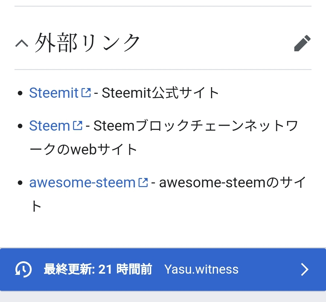 steemitの外部リンクが昔のままになっていて、情報が古かったり、リンク切りが発生していたため、外部リンクを整理しました。