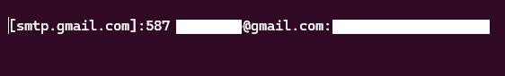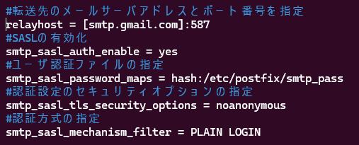 [smtp.gmail.com]:587 gmailメールアドレス:パスワード