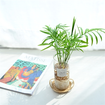 테이블 야자는 실내의 조명만으로도 잘자라는 식물이에요. 생육이 느린편이며 흙 없이 물만 담궈서 재배 (수경재배)가 가능해요. 공기 중에 수분을 방출하는 능력이 뛰어나고 화학물질을 제거하는데 좋아 공기정화식물로 가장 인기있어요.