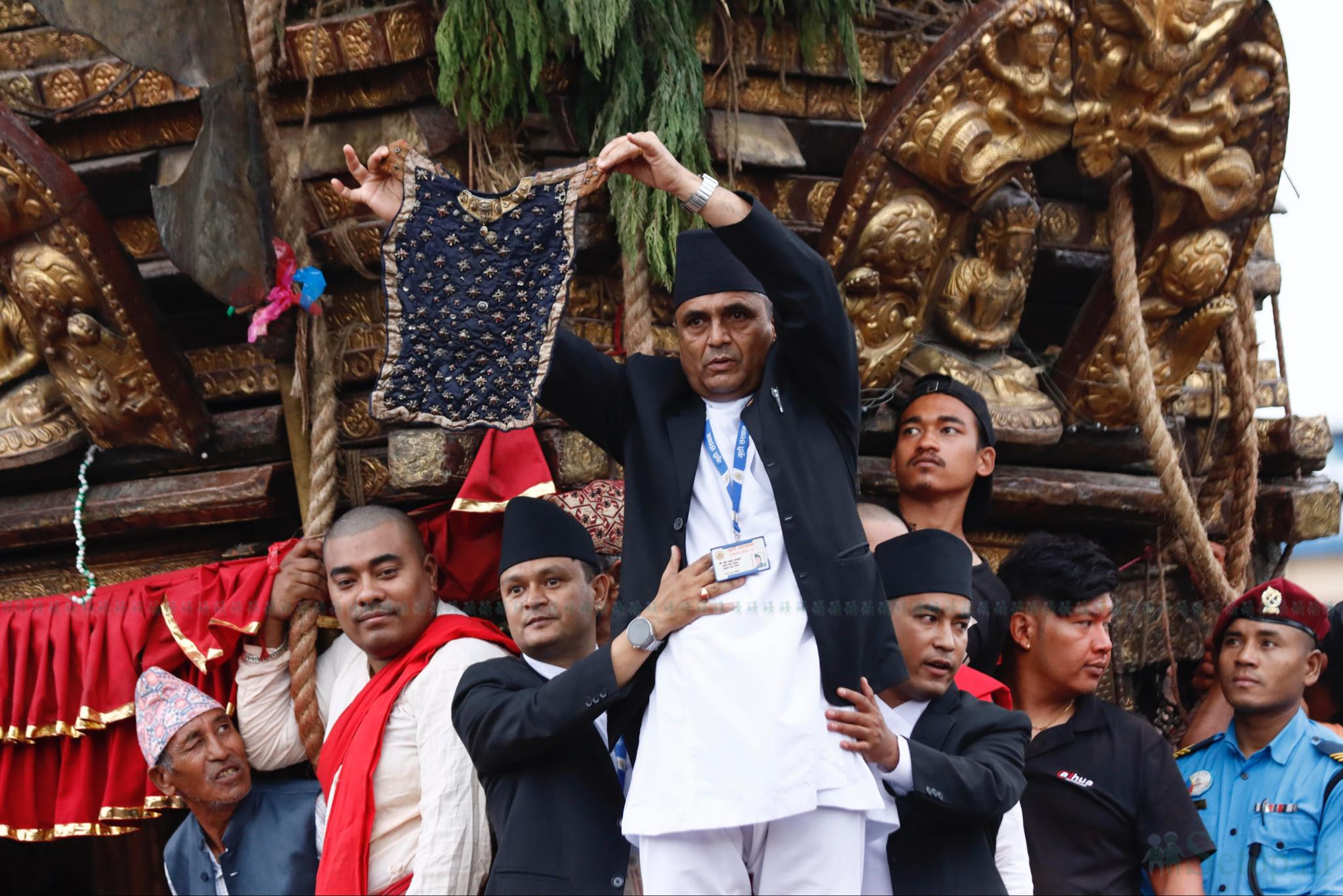 Display of the Bhoto: Amidst much fanfare, the bhoto is held up by a government official, typically a high-ranking officer, for all to see. The ceremony is attended by the President of Nepal and other dignitaries, highlighting its importance.