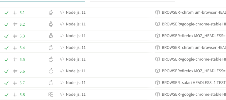 Finally, Travis CI is integrated to test your code using chromium, chrome, firefox, and safari, on linux, osx, and windows.