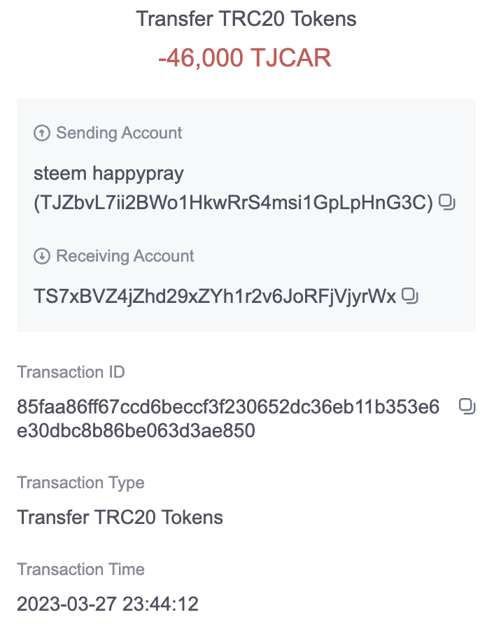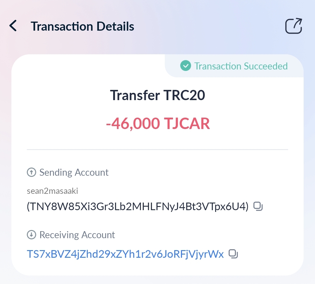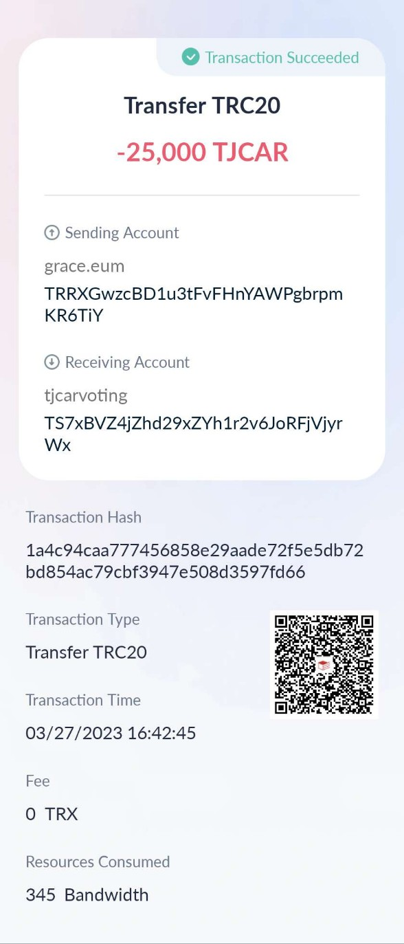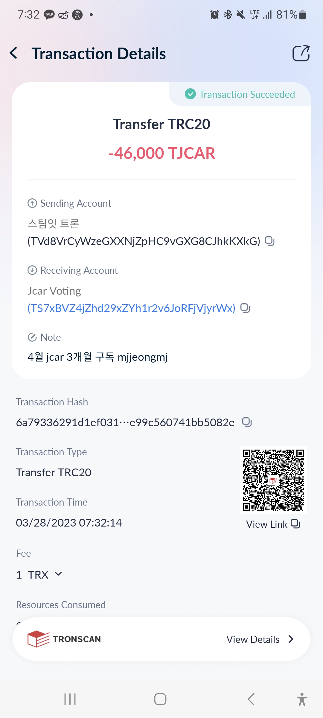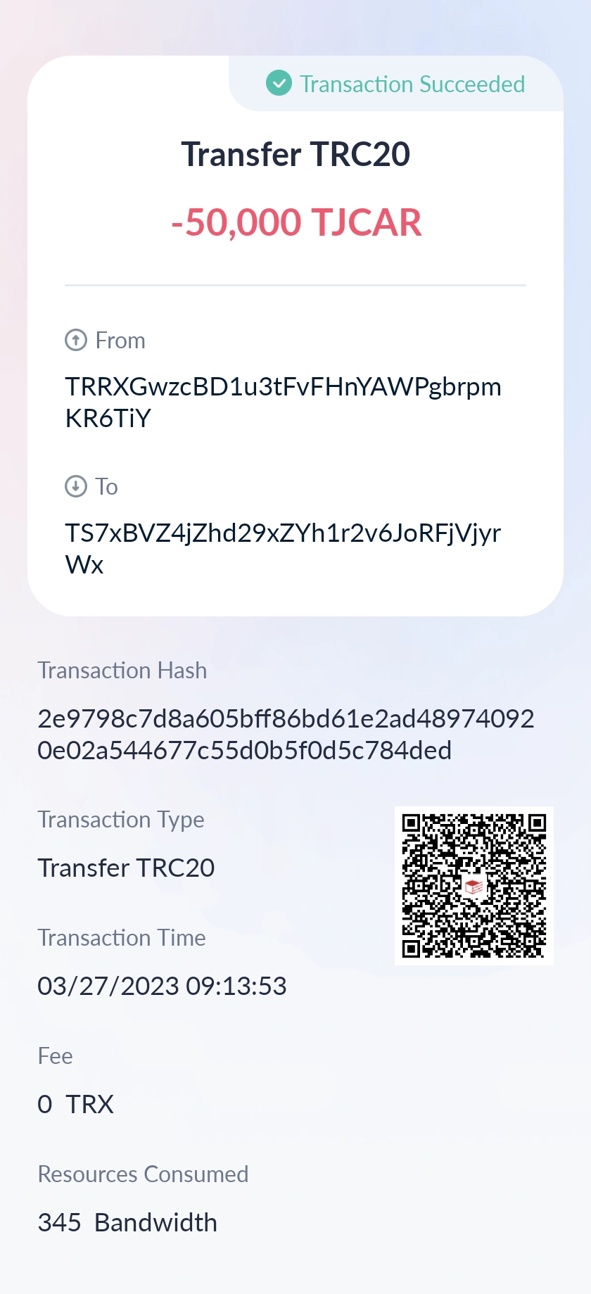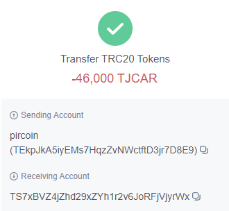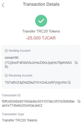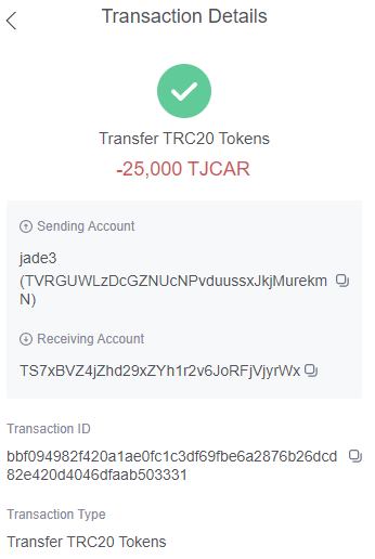 TJCAR 컨트랙트 주소 : TNHRQryXDyYSyqFHq8UqCYFSc6dzp81Dxa