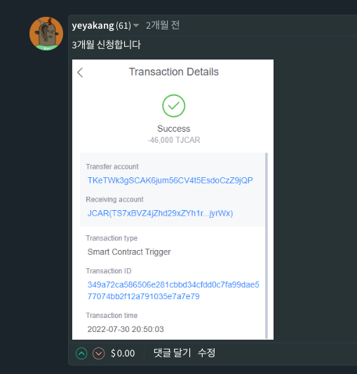 위에 에러나신 분은 트론 회수를 하신듯한데요.. 저는 다음달도 계속 유료보팅 신청하고 싶어서요..