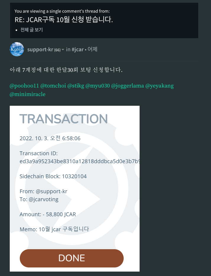 아울어 TNFT, TJCARBOOK, TJCAR 등 자동보팅 누락이 된 경우에도 이 포스팅에 댓글 남겨주시면 확인하도록 하겠습니다.