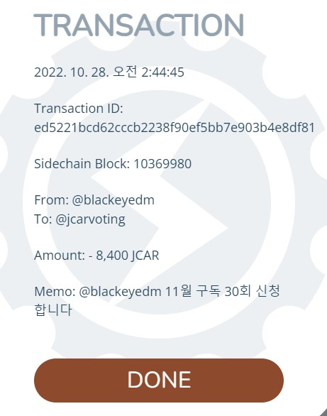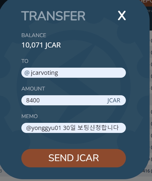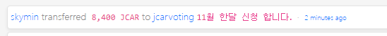 11월 한달 30회 (24시간 내 1회 보팅) - JCAR 8,400 개 신청 합니다.