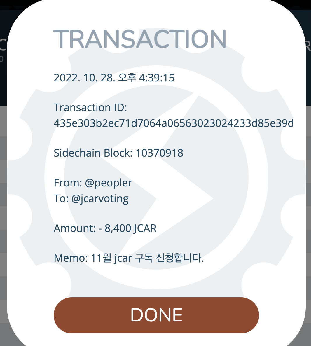 위 3가지 중 하나를 선택해서 @jcarvoting 으로 jcar를 전송하신 뒤 이 포스팅에 댓글 적어주시면 됩니다.