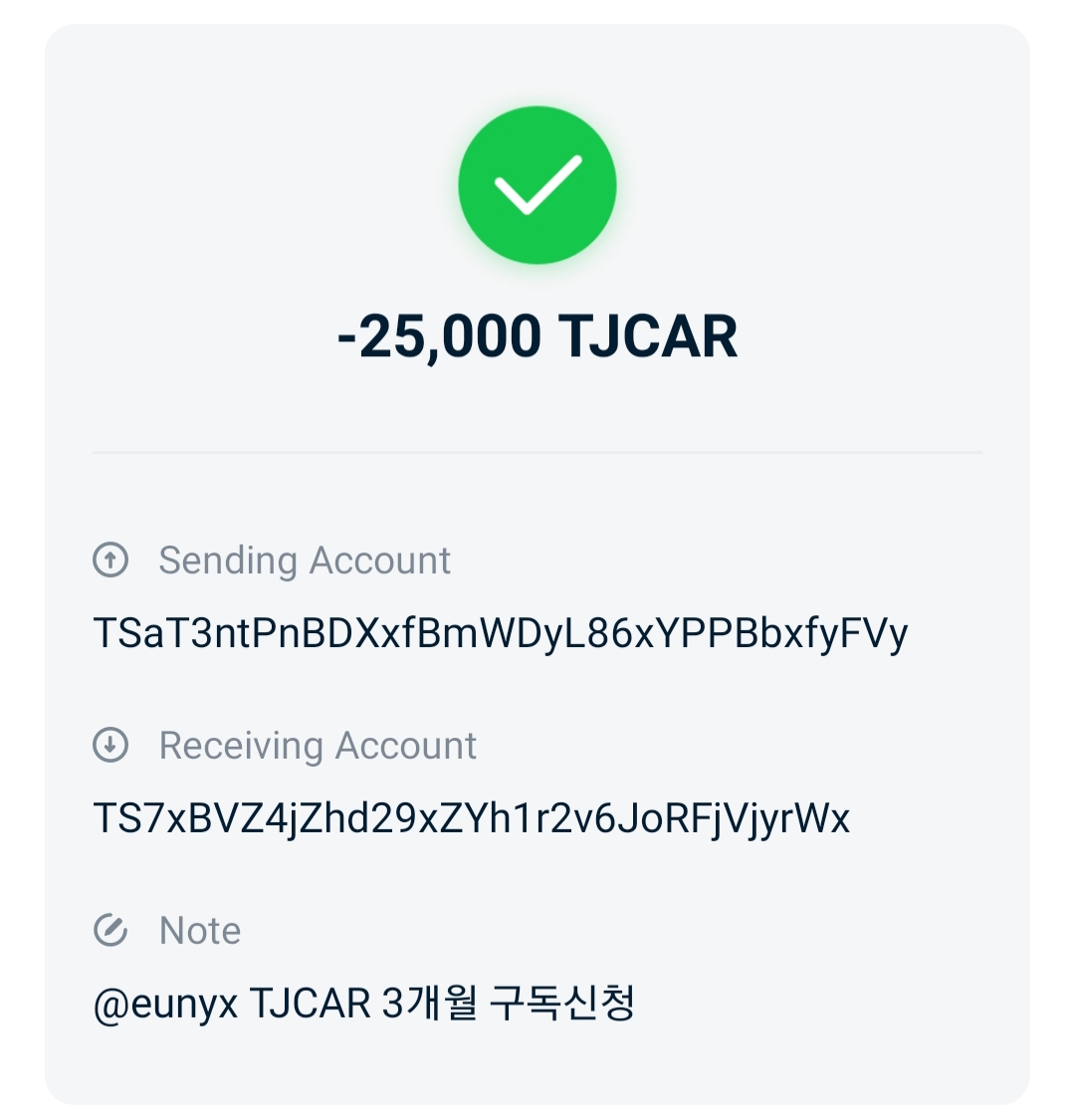 TJCAR로 참여시 전송 주소 > TS7xBVZ4jZhd29xZYh1r2v6JoRFjVjyrWx