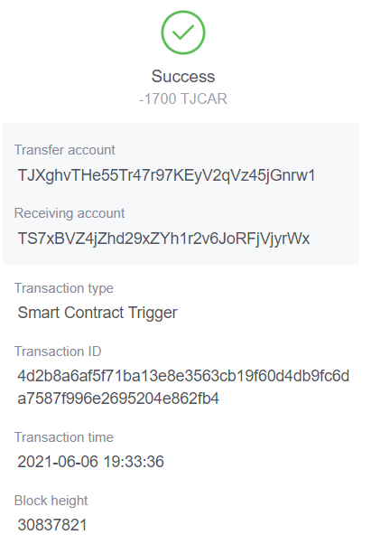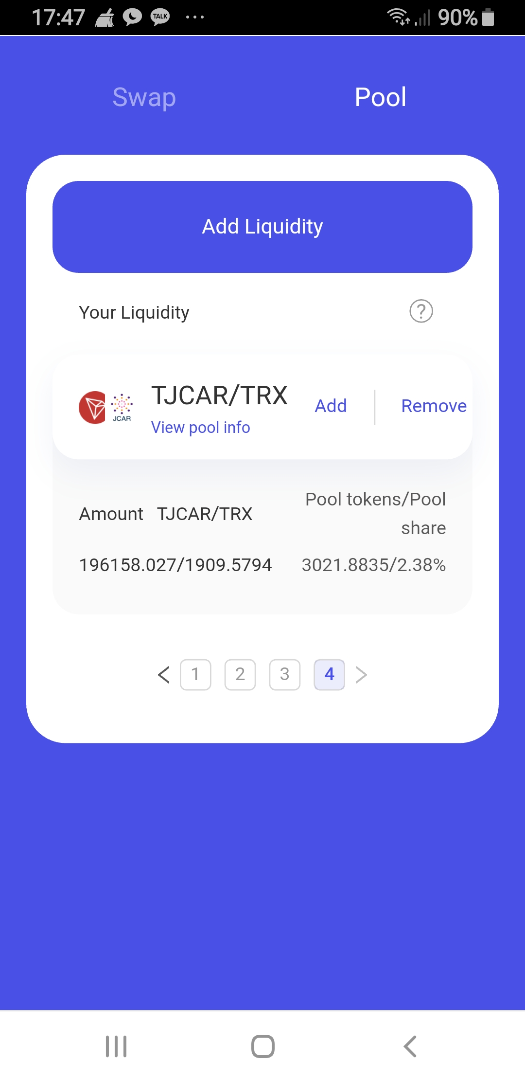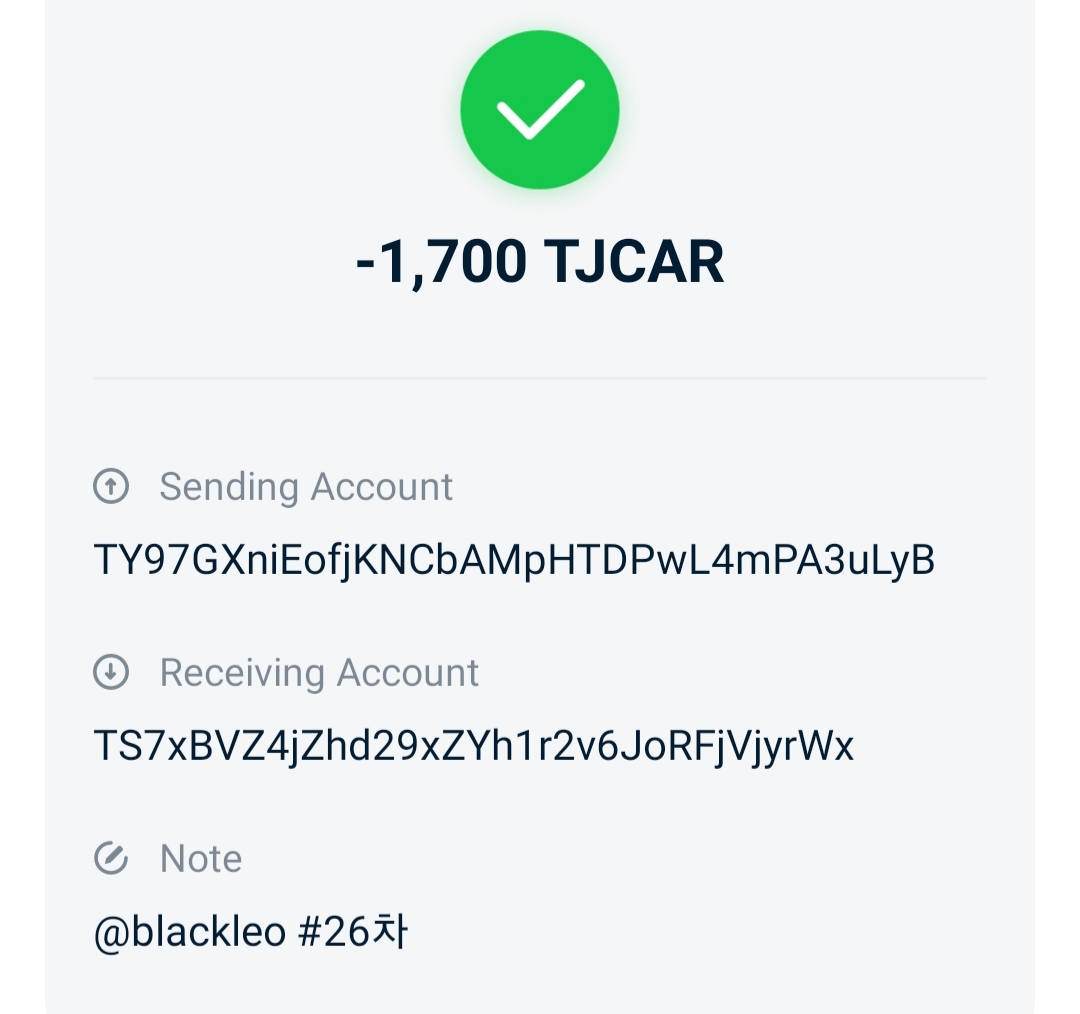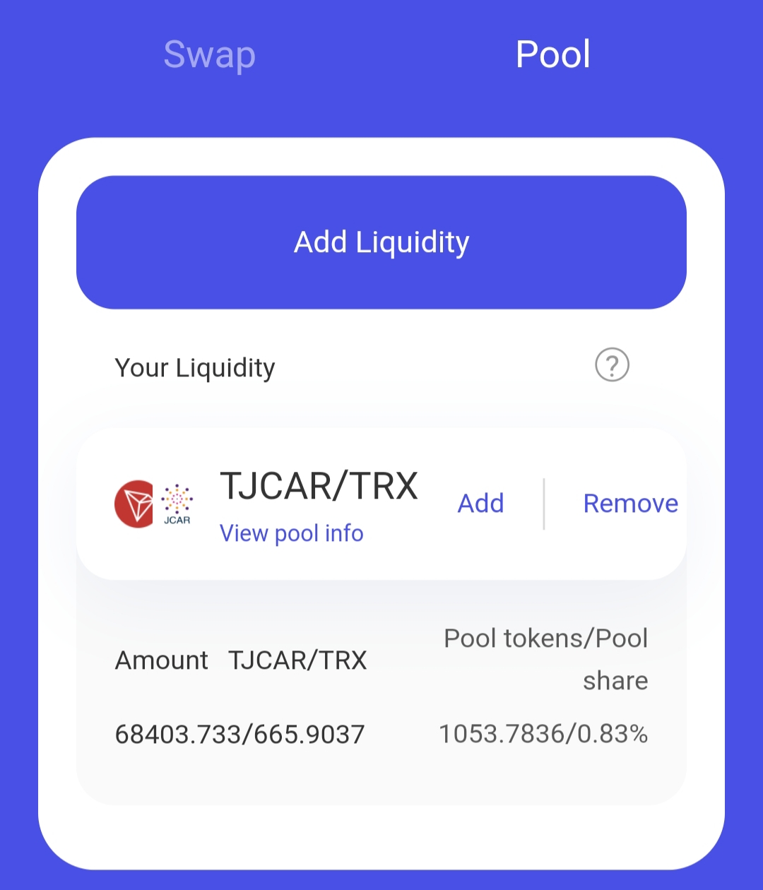 TJCAR-TRX 유동성 공급 LP토큰 잔고 확인입니다.