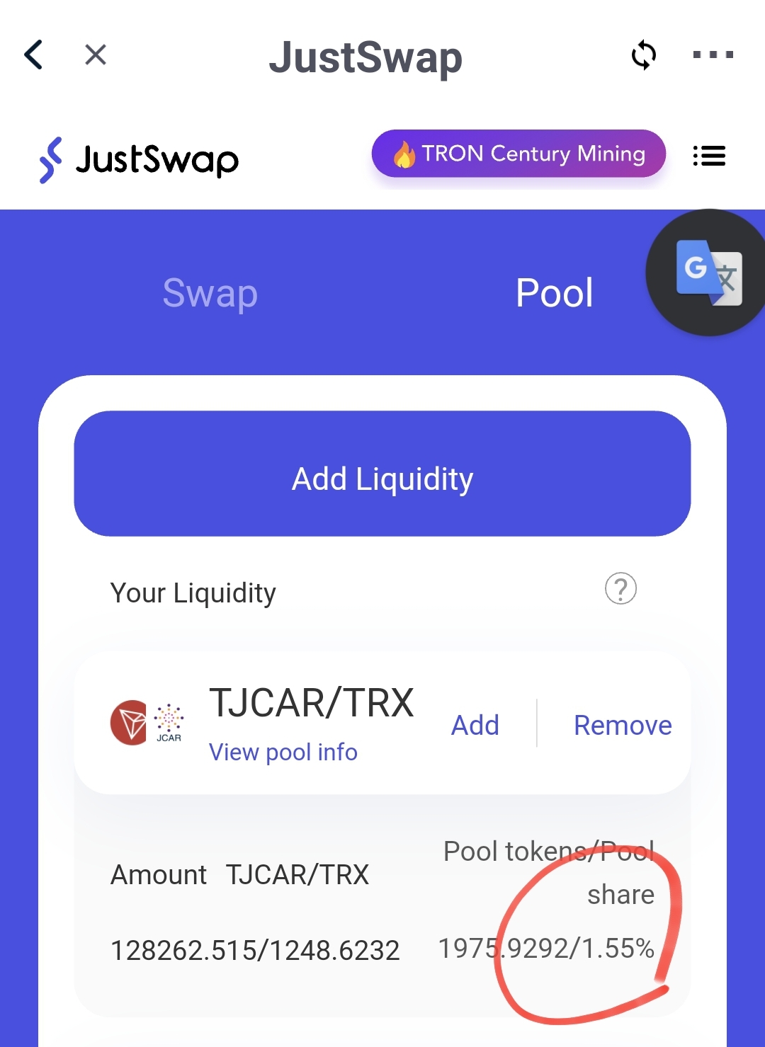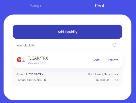 참여하실 때 크롬 브라우저에 트론링크가 설치되어 있어야 하며, 유동성을 공급하기 위해서는 일정량의 트론을 동결시켜서 에너지를 확보하셔야 스왑 및 유동성 공급을 할 수 있습니다.