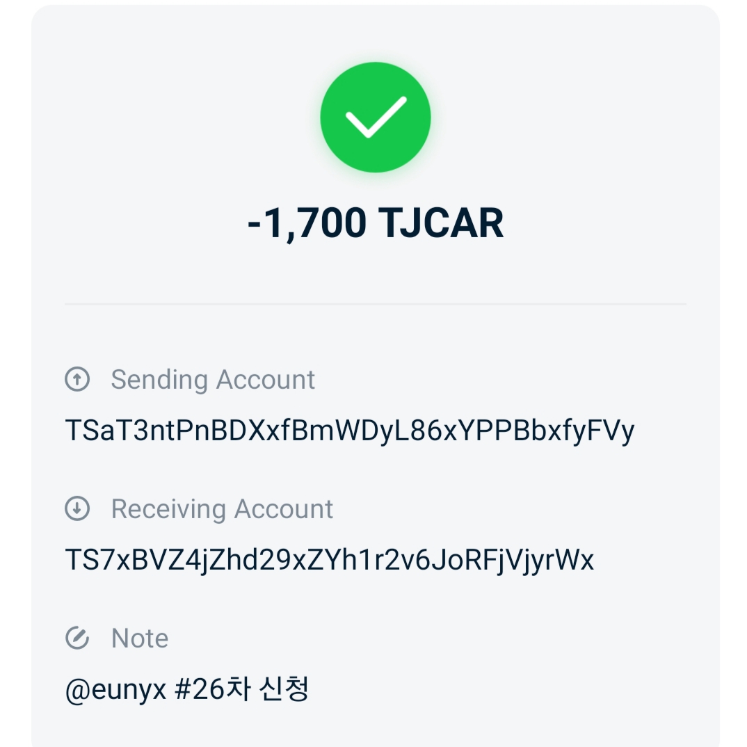 1, 저스트스왑 페이지에서의 LP토큰 수량 잔고 캡쳐 이미지 제출한 후 TJCAR 1700개 전송