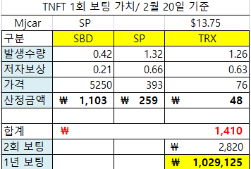 비율별로 가장 많은 TNFT를 보유하신 분은 하루에 83%의 비율로 하루 2회 보팅을 지원받게 됩니다.