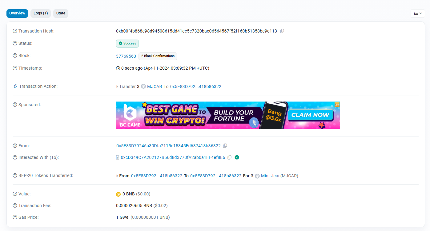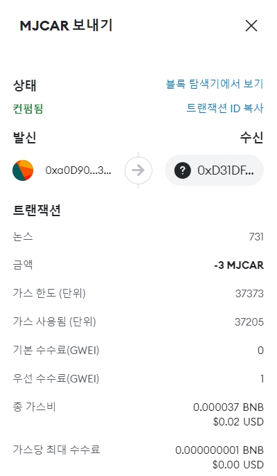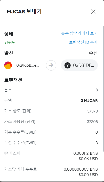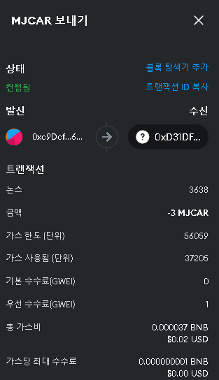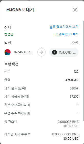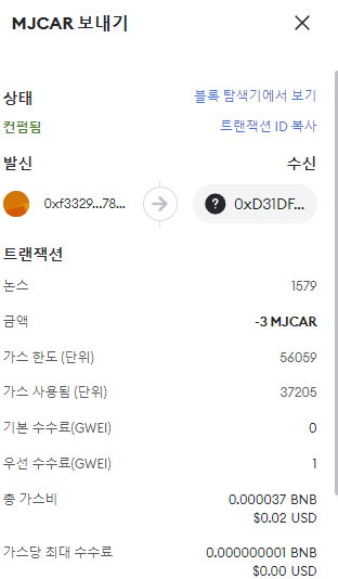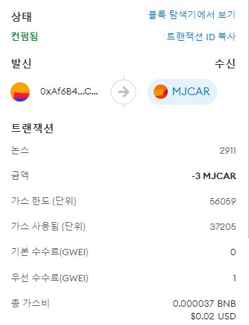 Mjcar토큰 3개를 전송한 뒤 이 포스팅에 댓글로 BSC 주소를 남겨주세요.