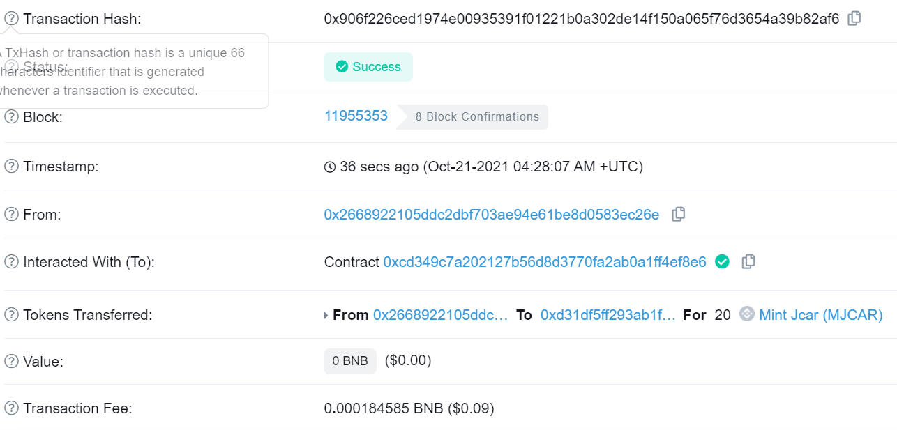MJCAR : 0xcD349C7A202127B56d8d3770fA2ab0a1FF4ef8E6