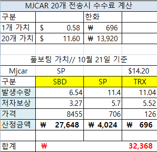 10월 21일 현재 Mjcar 및 보팅 가치 비교