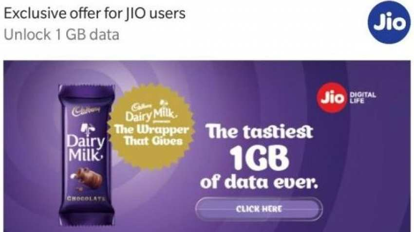 1 जीबी जिओ डाटा मुफ्त डेयरी मिल्क चॉकलेट दे रहा है, जानिए कैसे