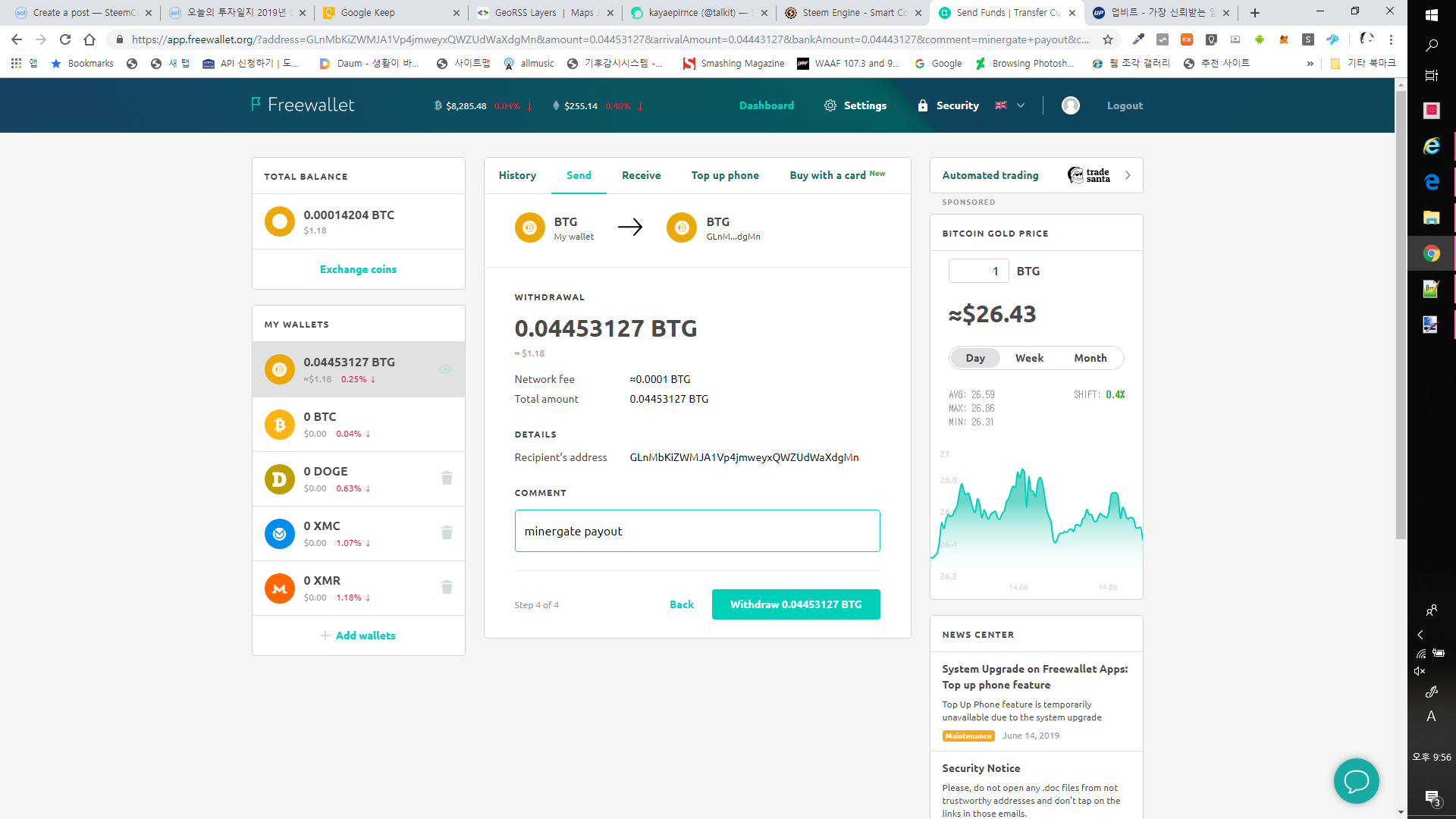 어제 Free Wallet까지 비트코인골드를 옮겨 놓았습니다.