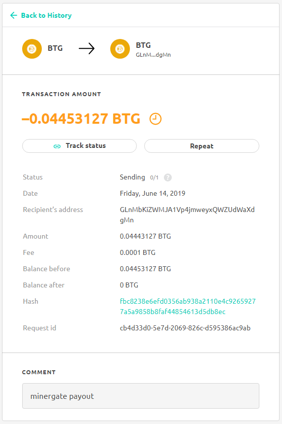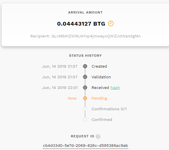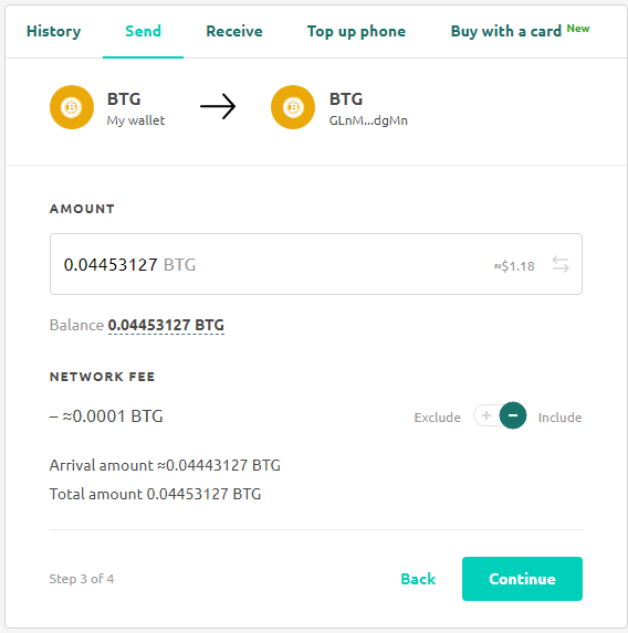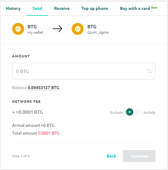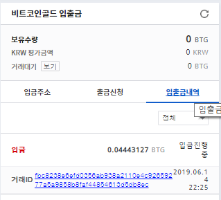이체 수수료는 0.0001 비트코인골드 입니다.