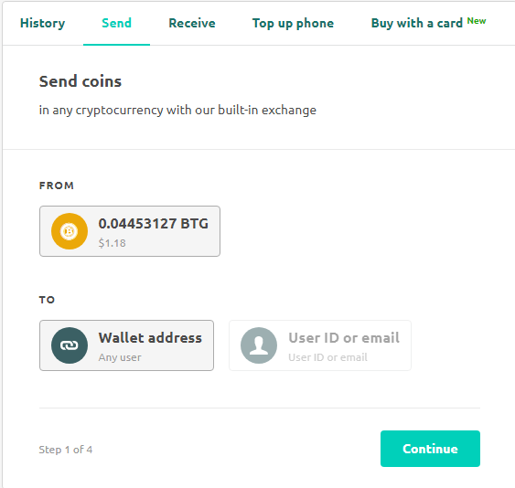 Send를 누르시고, To에 Wallet Address 를 선택하십시오.