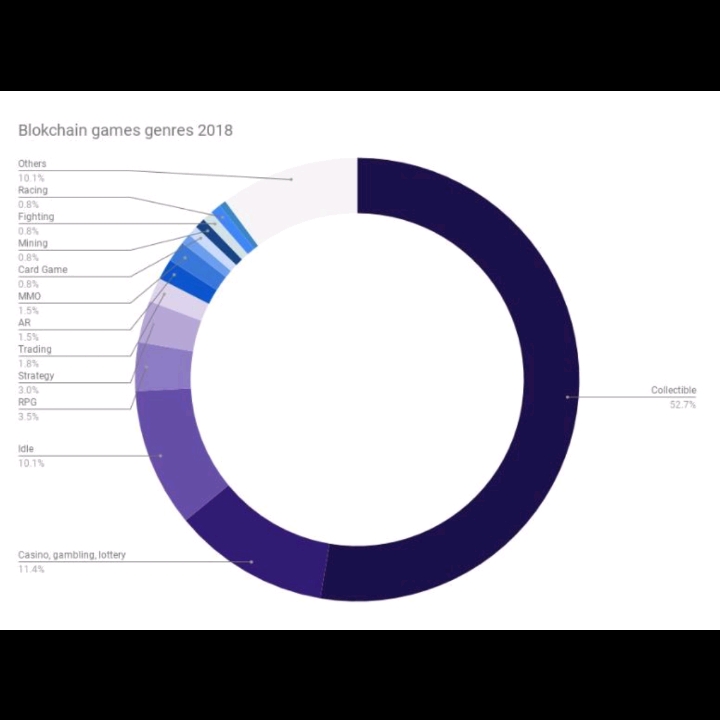 According to lockchaingamer portal there are 395 blockchain gaming projects on the market. The most popular genre is “Collectible” with 53%, second one is “Casino, gaming, lottery” with 11%, “Idle” takes the third place with 10%.