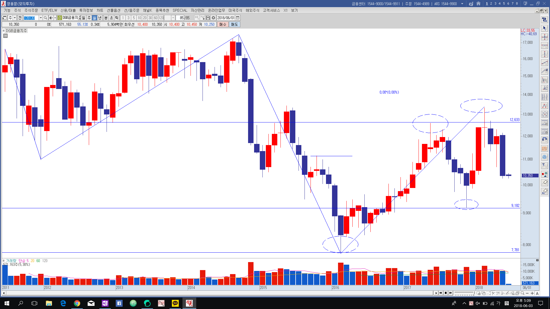 DGB금융지주 월봉 거래량 59억