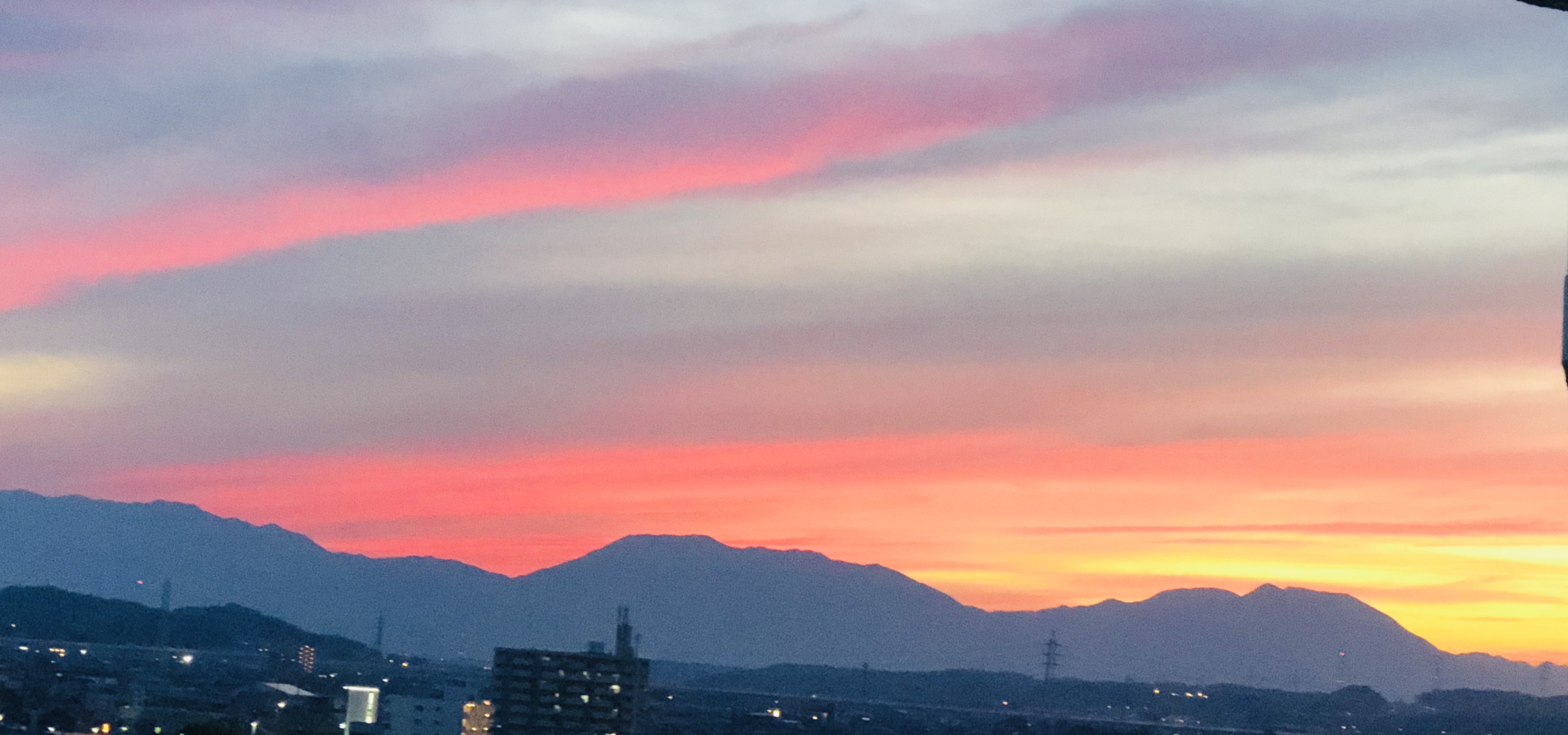 我が家のベランダから見える夕暮れ時の景色です.(この写真は昨年の夏の写真です)