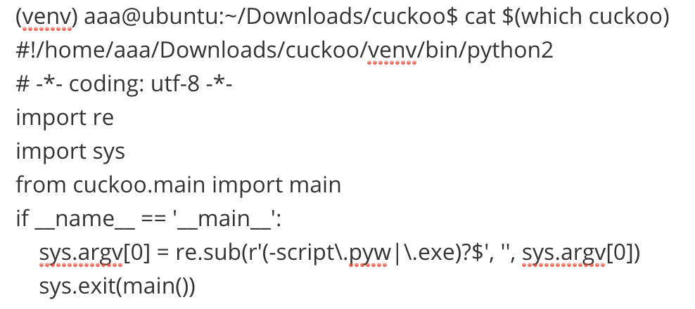 (venv) aaa@ubuntu:~/Downloads/cuckoo$ which cuckoo