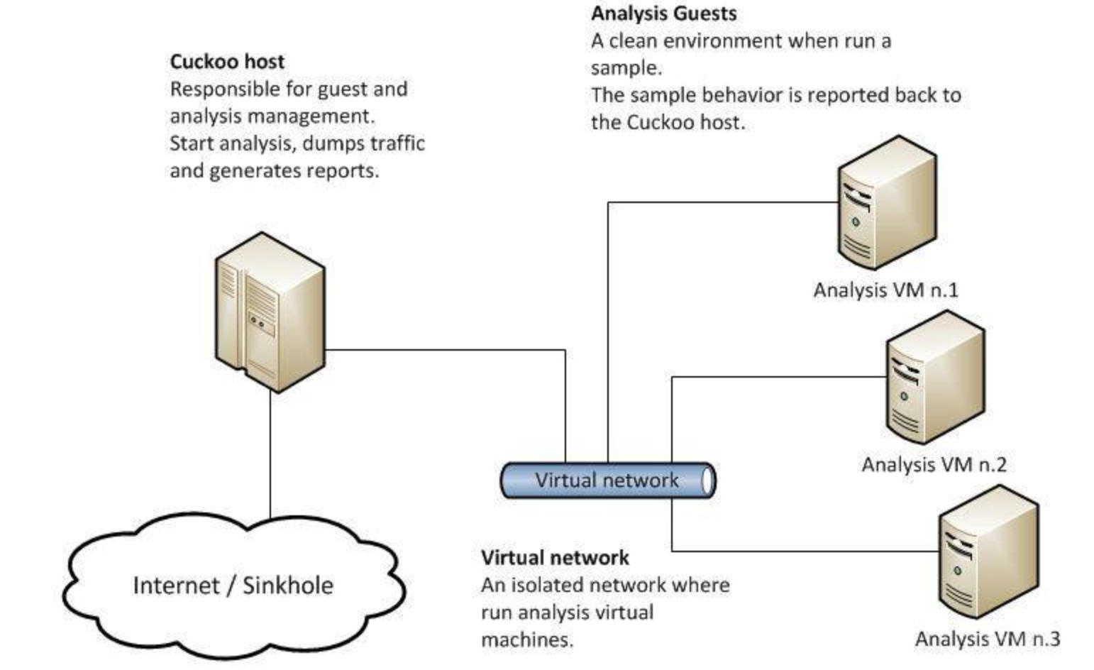 | guests | --> Analysis process for performing analysis tasks on virtual machines